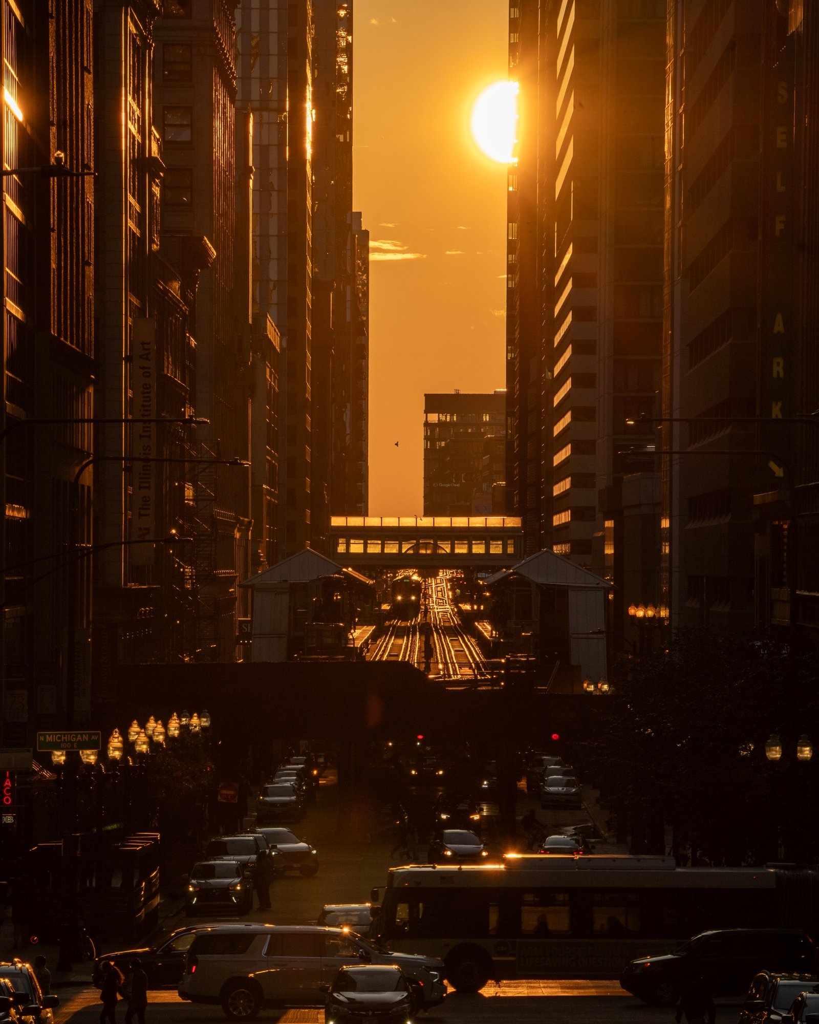 Chicago Henge occurs when the sun aligns perfectly with Chicago’s east-west oriented street grid, creating stunning visual corridors of light between the downtown skyscrapers. Similar to Manhattan’s famous “Manhattanhenge,” this phenomenon happens because Chicago’s Loop district was planned with streets running directly east-west and north-south, creating natural channels for the rising and setting sun.